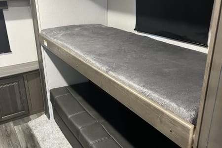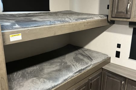 Kids will love their own dedicated space — a separate bunkroom with four bunks, giving them room to play, relax, or sleep in their own corner of the RV.