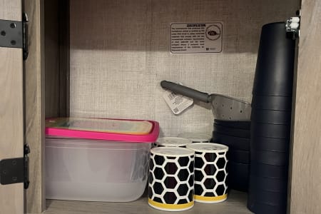 You will have a coffee pot some Folgers and coffee filters along with a toaster and Bullet blender