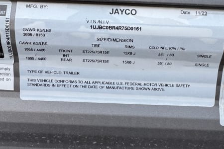 Exterior Features: Standard patio awning, manual front and rear leveling jacks.