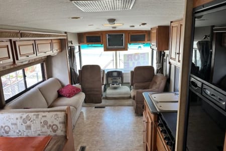 Available today, is a clean well maintained low mileage Class A motorhome. Comfortable sleeping for up to 5 people with a queen bed, dinette conversion and a sleeper sofa as well. This 30B model Sunstar has a single living room slide out that creates a large living area. The floorplan of this 30B model gives you plenty of living space while still being an easy to drive small class A RV.