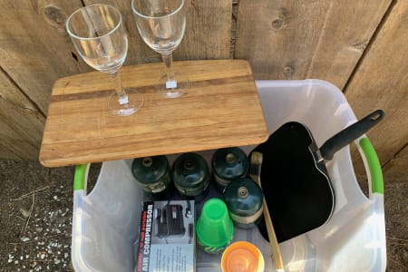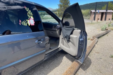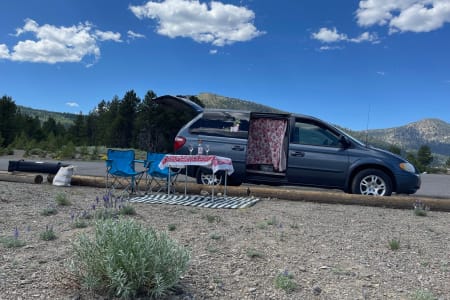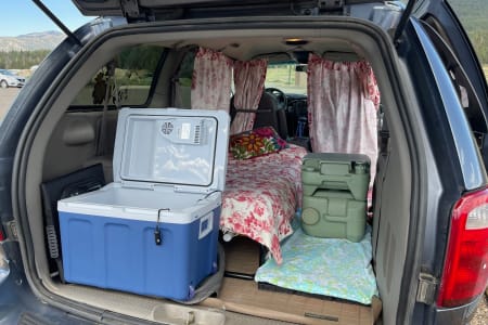 You find yourself camping in the perfect spot and you're prepared! This mini camper van comes with everything you'll need for a memorable trip. Park in regular size spots, with easy back up camera There is a single bed frame with a mattress that can be placed along side with enough space for 2 and your furry friend.