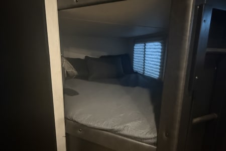 Sleep up to 8 comfortably in this easy-to-tow, fully equipped travel trailer Aunt Annie’s Attic features a private queen bedroom, double bunks, and convertible sofa and dinette, plus a full kitchen and bathroom for all the comforts of home.