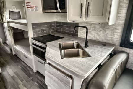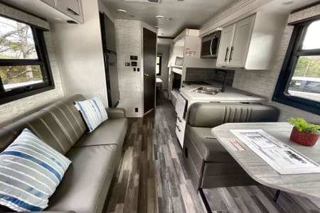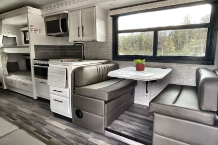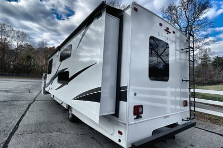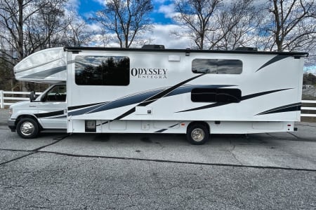 Feedom to Explore! is a 2025 Entegra Odyssey on a Ford E450 platform. Perfect for family vacations, tailgating, themed birthday parties, hen parties and overflow guest accommodations.