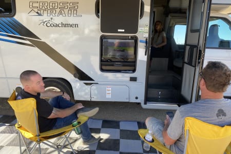 The RV is a great size for camping just about anywhere. Fully contained with solar and an onboard generator, two TV's (one inside and one outside. Has everything you need for the perfect trip, just add food, clothing, and a sense of adventure.