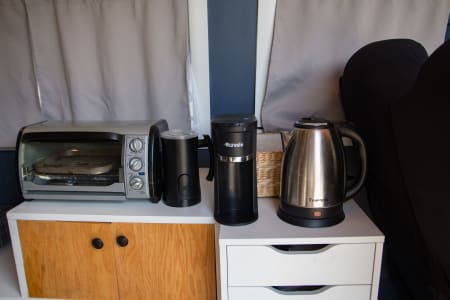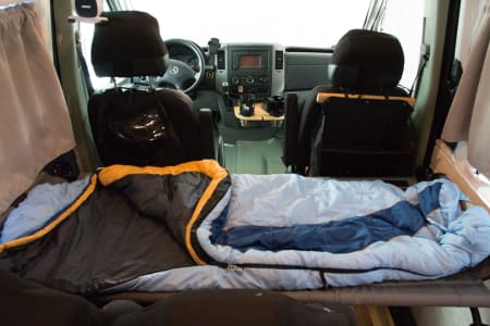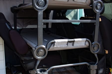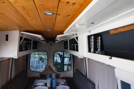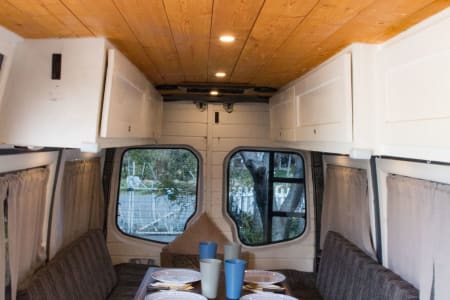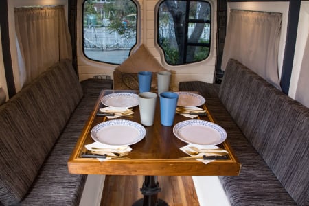 Rear table comes down for a large bed (3 kids or 2 adults can sleep here).