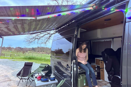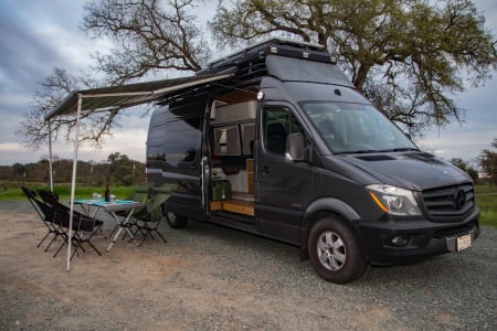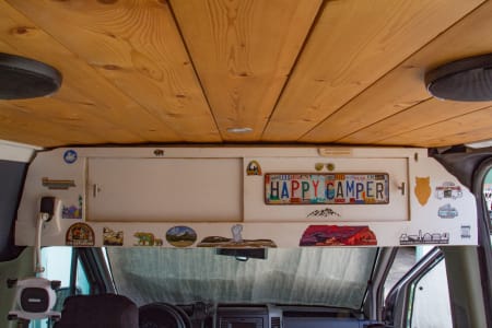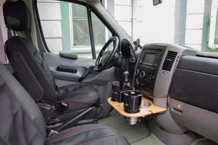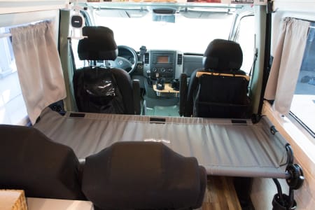 With a full circle of windows, this van is built for seeing the sights. Two captain’s chairs sit behind the front cabin.