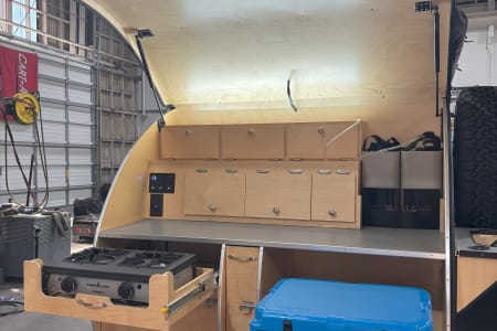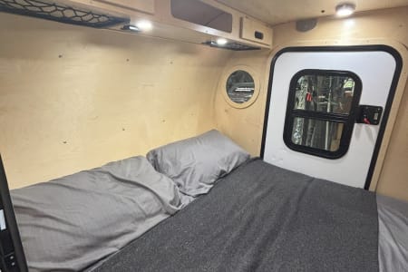 The Scout features a queen-size memory foam mattress, and a rear galley with a Chef Ranger II stove. It’s off-grid ready with 100W solar and supports an optional rooftop tent (shown in photos). Compact yet capable, it’s perfect for weekend adventures.