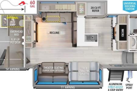 - **Outdoor Living:** Relax on the spacious patio under the electric awning,