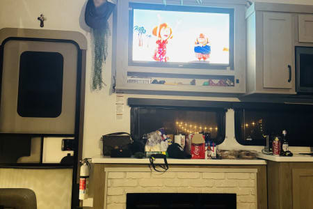 • Spacious living area – Comfortable seating, entertainment system, and fireplace