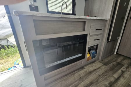 • Electric fireplace – Cozy ambiance & supplemental heat