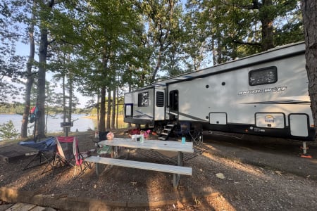 Luxurious, 2 bedroom and light towing weight! Dry weight is only 10,721 pounds. This spacious fifth wheel trailer that offers all the comforts of home while on the road. This like new model is ready to take you and your family on your next adventure.