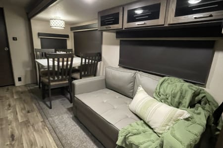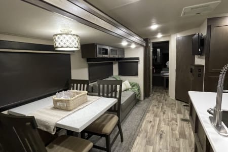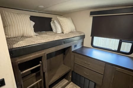 This spacious bunkhouse beauty is perfect for families and groups who want comfort, style, and plenty of room to make memories. With sleeping for 8, a private primary bedroom, outdoor kitchen, and a private cozy bunk area ~ it’s ready for your next adventure.