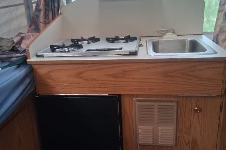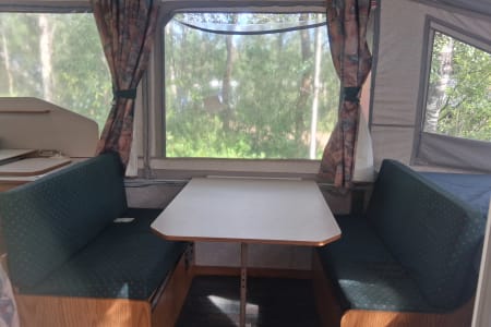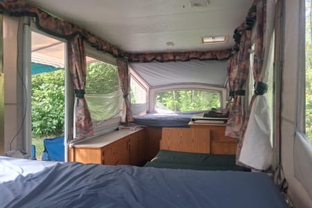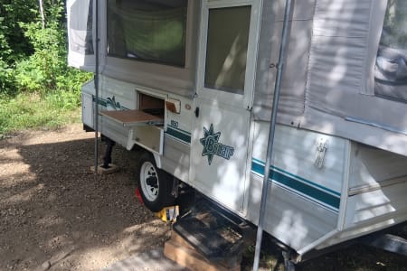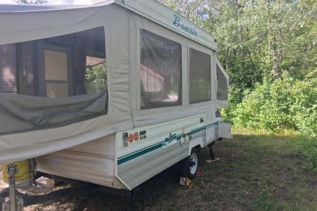 The 1996 Bonair Tent Trailer really steps up its game with the addition of a built-in room, giving you even more versatility and comfort during your camping trips. This built-in room provides extra living space, making it ideal for dining, lounging, or just having more room to spread out. Whether you’re looking to escape the elements or simply need more space for gear and activities, the built-in room adds significant value to the trailer.