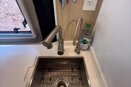 14" deep stainless steel sink with UV-filtered water for safe drinking