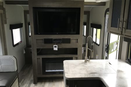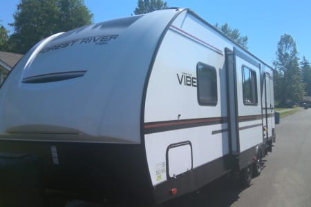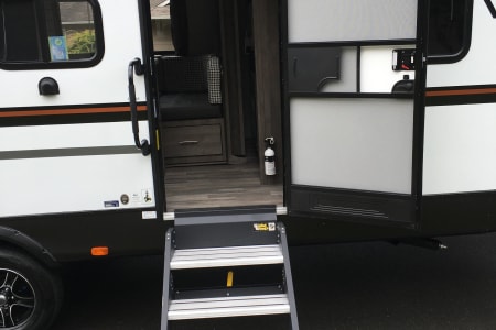 Go on adventures with this amazing trailer offering a queen bed and a set of bunks for the kids. With a spacious slide, this trailer offers plenty of room for a family of four.