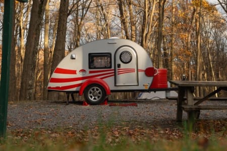 Thanksgiving accommodations kind of tight? Let the kids (or you) camp in the drive or backyard! Amazingly cute and totally towable 2016 T@G teardrop trailer. This is one of the smallest ( 13.7 ft), but best made units there is. All the wood surfaces are actually wood (rare these days), and everything works like a charm. Fits a guaranteed two adults, and however many dogs and kids (not provided) you can put up with. Not good at backing a trailer into a spot? Just detach from the hitch and push it where you need it to go. from the pick up location it is a short 2-3 hours from Shenandoah's, the shore, or Maryland and Pennsylvania mountains.