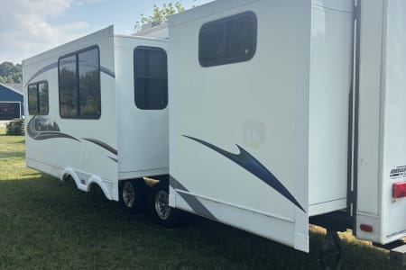 The 18 foot electric powered awning will easily keep you cool and comfortable and the outdoor shower allows you to cool down or clean up with ease.
