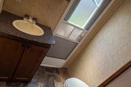 Full bathroom with toilet, tub/shower, and sink with double doors can be accessed from the inside and conveniently accessed from the outside too!