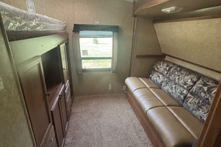 The bunkhouse is perfect for the kids on a rainy or super hot day with lots of space and a tv for entertainment.