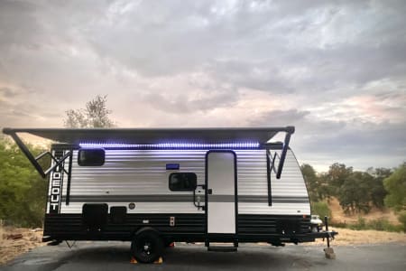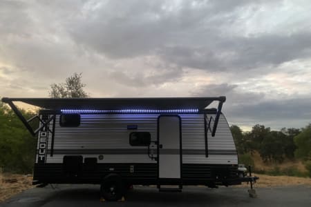 Outside, enjoy awnings for shade, storage in the pass through, and twinkle lights for curb appeal that’ll make your campsite neighbors jealous.