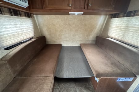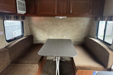 The propane furnace heats the trailer well. We also include a quiet electric space heater for night time use when you want warmth without running the furnace.