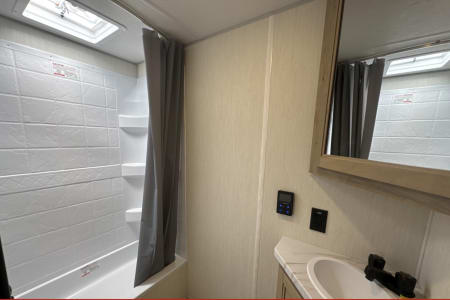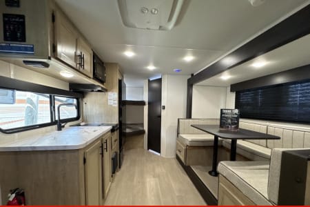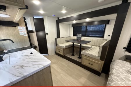 Embark on an unforgettable adventure with our stylish travel trailer — your cozy home away from home!