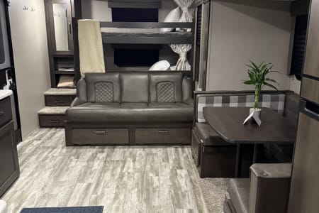 This spacious, luxury travel trailer is perfect for a family getaway or a couples trip.