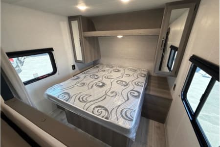 This is a Brand New keystone Hideout directly from Warner RV Center inventory. This is a great half ton towable unit that is super easy to Tow ( even for the beginners ) with a huge front queen bed and 2 large bunks for the kids or just one full-size adult on the bottom bunk. This unit has an endless Hot water system for long showers and a full awning for out door sitting and enjoying the weather. huge 81 inch high ceilings and a 15500 BTU Air conditioner to keep things cool.. Lots of Extras here in a brand new unit...