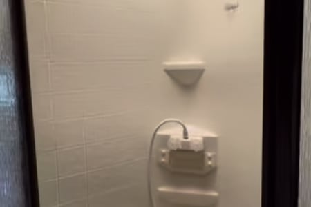 • Full bathroom: shower, toilet, and hot water