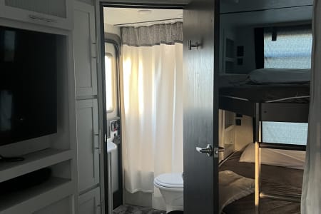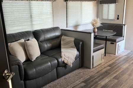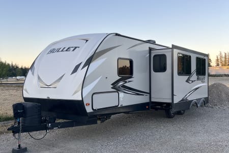 Enjoy our spacious, clean, well maintained 2020 Keystone Bullet. It comes complete with everything that you will need to make this your home away from home. Cold air conditioning or heater to keep you cozy. This trailer comes with a room with a queen bed and lift up mattress with storage. It also includes a bunk bed, pull out couch, and a convertible dining area. It will comfortably sleep 7 adults but up to 9 people with 2 kids per bunk. The kitchen area has a 3 burner gas stove, fridge & freezer and a sink. The bathroom has a standup shower/tub combo as well as its own entrance from outside the camper. Outside you have a power awning with an led light strip, and audio. There is a small fridge with 2 shelves outside. The trailer comes equipped with an electric crank for raising and lowering the tow hitch and stabilizing jacks. This trailer comes with the factory cold weather package. Whether it's summer or winter you can comfortably bring your family and friends for your next fun adventure!