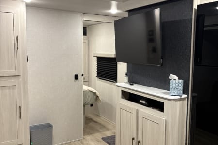 Plenty of room for the whole crew with a private residential queen bedroom, two full-size rear bunks (1 adult or 2 children for each bunk, weight limits apply), a convertible dinette (1 Adult or 2 children), and a jackknife sofa (1 Small Adult or child). Ideal for families or groups.
