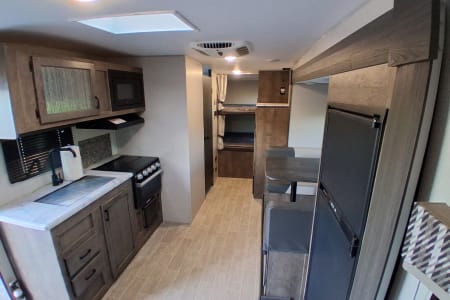 Our Sonic has been our great way to build family memories. It is set up nicely for a family with large bunk beds. The kitchen table and fridge slides out for extra room. It is lightweight and tows nicely. We have kept it in very nice condition and well-maintained. It is ready to enjoy and make some memories.