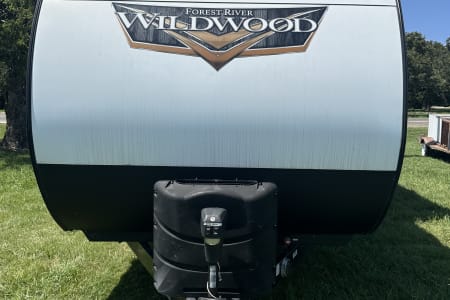 This RV is perfect for large families as it comes with a memory foam queen bed in the master bedroom, bunk beds for all the kids, a smart tv in the back room in addition to another smart tv in the living and dining room so you can watch shows or listen to music through the Bluetooth soundbar with outdoor speakers while you cook your favorite meals, as well as a outdoor kitchen with a mini fridge, a grill and a sink. This has a bathtub/shower combo and two air conditioners and an electric awning for them hot summer days.