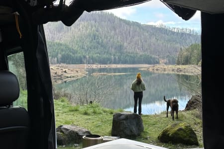 The van sleeps two people comfortably in the queen size bed (I'm 6'6" /2m and fit) and there is also the Groove Lounge, a bench seat with two extra seatbelts that you can fold down into a twin sized bed.