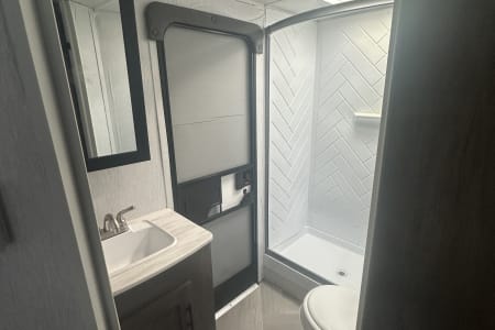 • Modern Amenities: Enjoy the convenience of A/C, heat, a fridge, stovetop, microwave, and even a flat-screen TV with streaming capabilities.