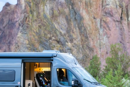 2.8 kW Onan quiet gas generator (National Park approved), 200W solar panel, dual AGM batteries, and 1,000W pure sine inverter keep you powered off-grid with ease.