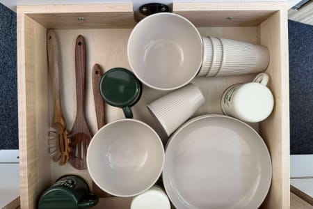 Sleeps 4 comfortably (Murphy bed + pop-top loft)