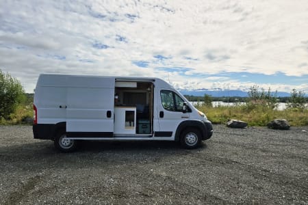 Get the best Alaskan experience possible by driving a Cabin on wheels thru wild Alaska. Warm some water on the propane stove to put in the shower container and shower while looking at Denali or the Mentasta Mountains.