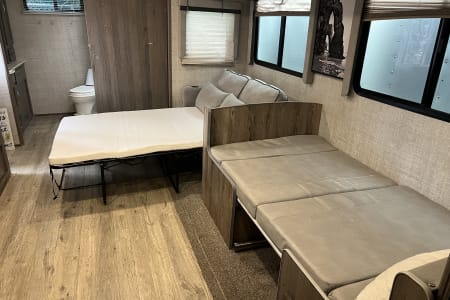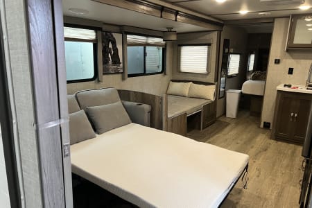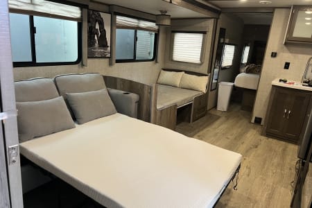 Beautiful camper with a lot of room ,large bathroom, big shower ,King size bed all the amenities very comfortable for short term or long-term.