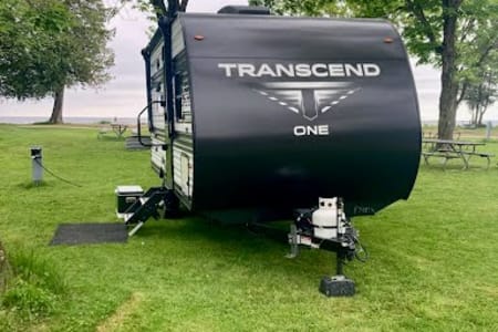 LP quick‑connect for external grill, bottle opener hook, magnetic storage door catches, walk‑on roof, spare tire carrier, tinted windows, ladder prep, and black‑tank flush out