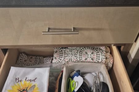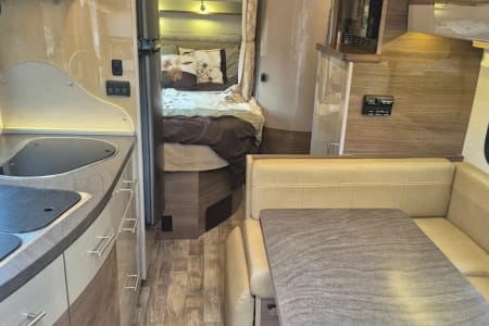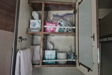 Full Bathroom, Full Kitchen, Easy/Comfort Driving, Leveling Jacks, Rear Camera, Navigation, Propane Generator, Front and House Heat and Air Conditioning, Comfortable Sleeping, Linens Included, Extra Blankets, Towels, Beach Towels, Utensils, Cups/Plates/Bowls, Pots/Pans, Cleaning Supplies, Bathroom Supplies, Play Station with Games, DVD Player with Movies, Extra Speaker for TV, Sunglasses, Charge Cords for Android and iPhone, Games, First Aid Kit, Full Size Cooler for Extra Drinks, Storage Containers Under Master Bed
