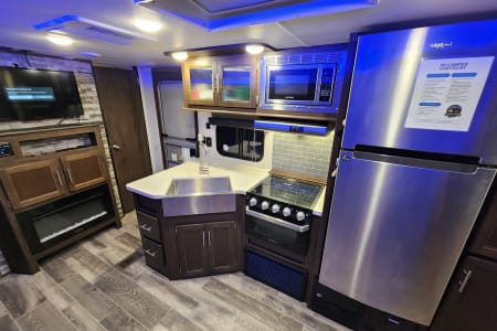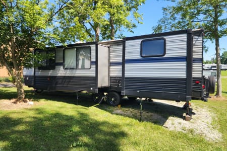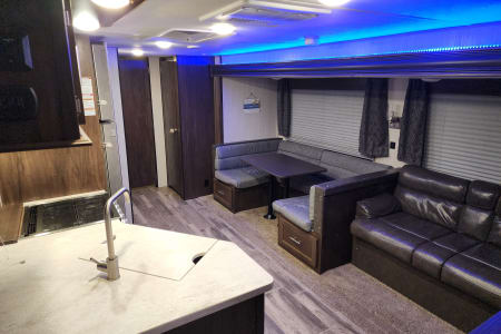 Looking for a camper with two doors? The Forest River Cherokee has an extra door for direct bathroom entry. Plus, the outdoor shower is perfect for those muddy days.