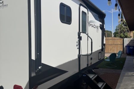 2023 Grand Design Imagine Aim 15BH. It’s the little trailer that could. Only 19 feet and 3500lbs dry, it is a snap to tow. Very easy to setup and take down.