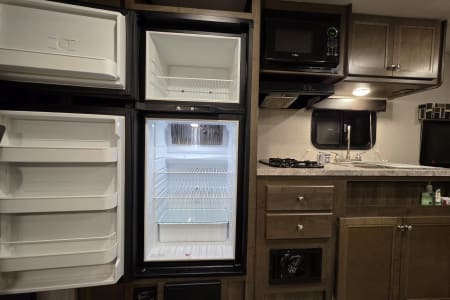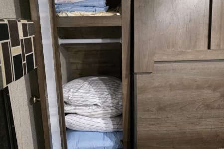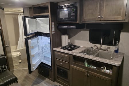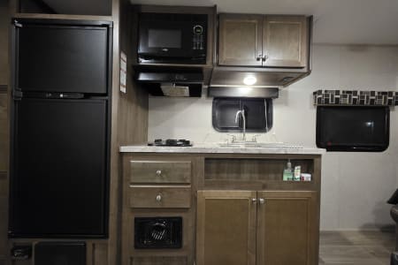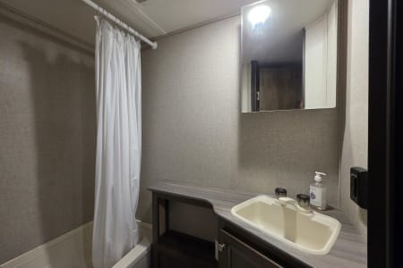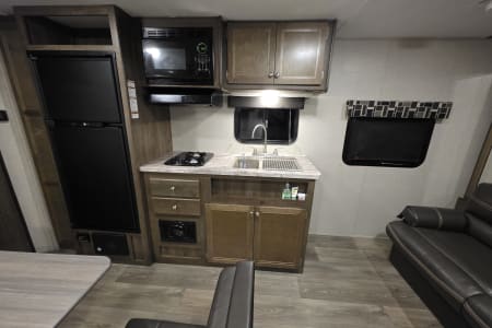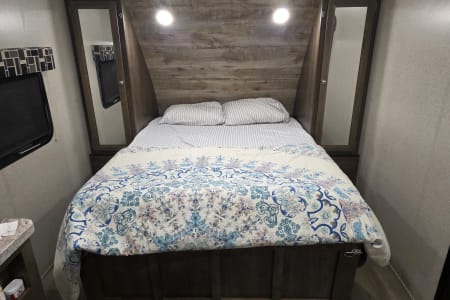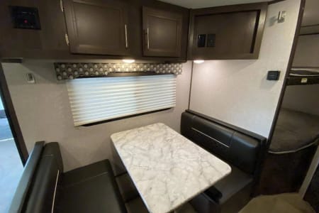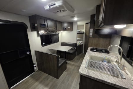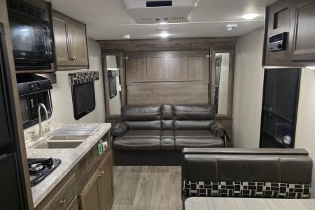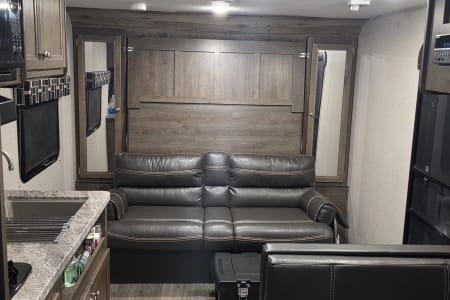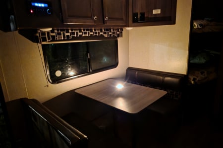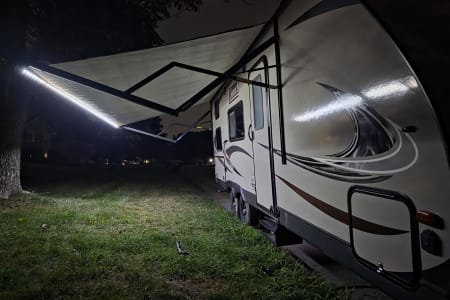 - Modern Interior, and exterior: Air Conditioner (Needs electric campsite), Gas water Heater, 16' Power Awning with LED Lighting,
