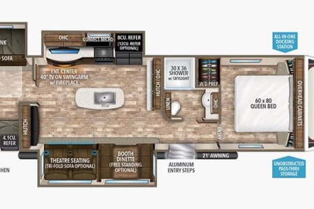 Large living room with entertainment center & theater seating