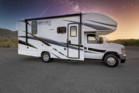 2024 Compact Class C Entegra Coach Odyssey Motorhome – Luxury, Space & All-Inclusive Convenience! This compact well-equipped RV sleeps up to 4 guests and features a private bedroom with a queen bed and high-end linens, a gorgeous dinette area and a fully-equipped kitchen with everything you need for the ultimate road trip. This nimble hotel on wheels is your perfect travel companion for your national park bucket list adventure, a family getaway, or an epic festival experience! All Inclusive -- no mileage charges!