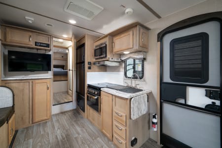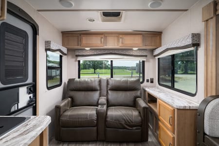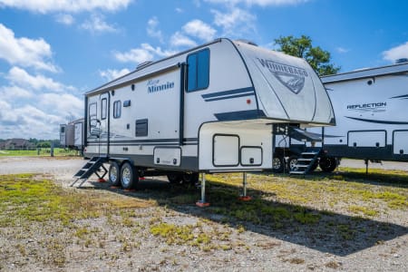 The Micro Minnie 5th Wheel packs full-size adventure into a compact, half-ton towable frame. Sleeps 4-6, full-size shower, queen bed master bedroom, 2 recliners, and pull-out kitchen table bed. With smart floor plans, all-weather construction, and upscale interior finishes, it's built for travelers who want to go further without giving up comfo