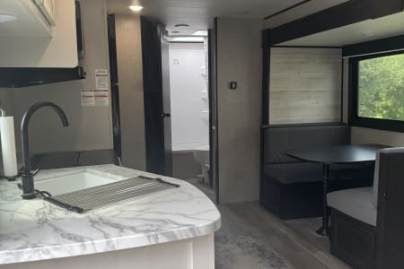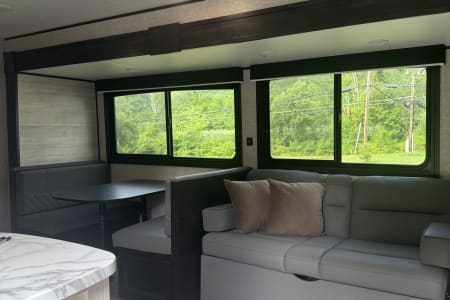 This trailer sleeps 6 very comfortably and 8 comfortably and includes an outdoor kitchen, outdoor shower, retractable awning, smart TV, and so much more! It is available for self-towing by experienced and equipped individuals or for delivery within 30 miles of Mahopac, NY (please see details). Other awesome uses: need extra space for a family reunion, event, or wedding? Home renovations making it uncomfortable inside? We can park this in your driveway!