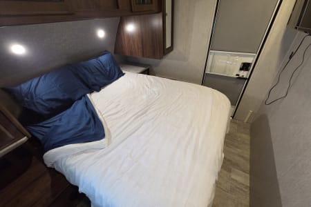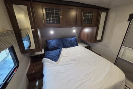 The kitchen includes gas range, refrigerator, microwave, pantry and sink. Bedroom has a queen size bed that have 2 storage closets for clothes ext. Night stands both have electric outlets.