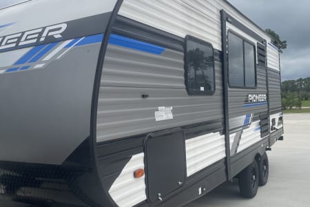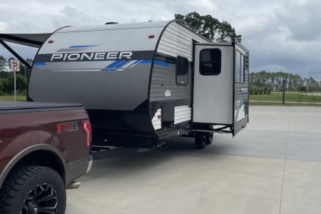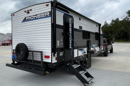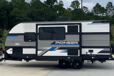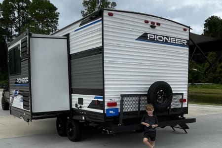 2023 Heartland Pioneer 215RB is Ready to make memories! Skip the hassle and start your trip the second you arrive! This like-new 27ft travel trailer is the perfect mix of comfort and convenience. Whether you’re headed to the beach, lake, family reunion, hunting, fishing or race weekend *We love MotoCross!* — everything’s set up and ready.
